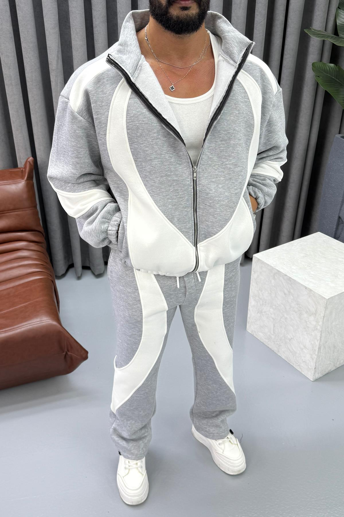 ÇİFT RENK EŞOFMAN TAKIMI GRİ