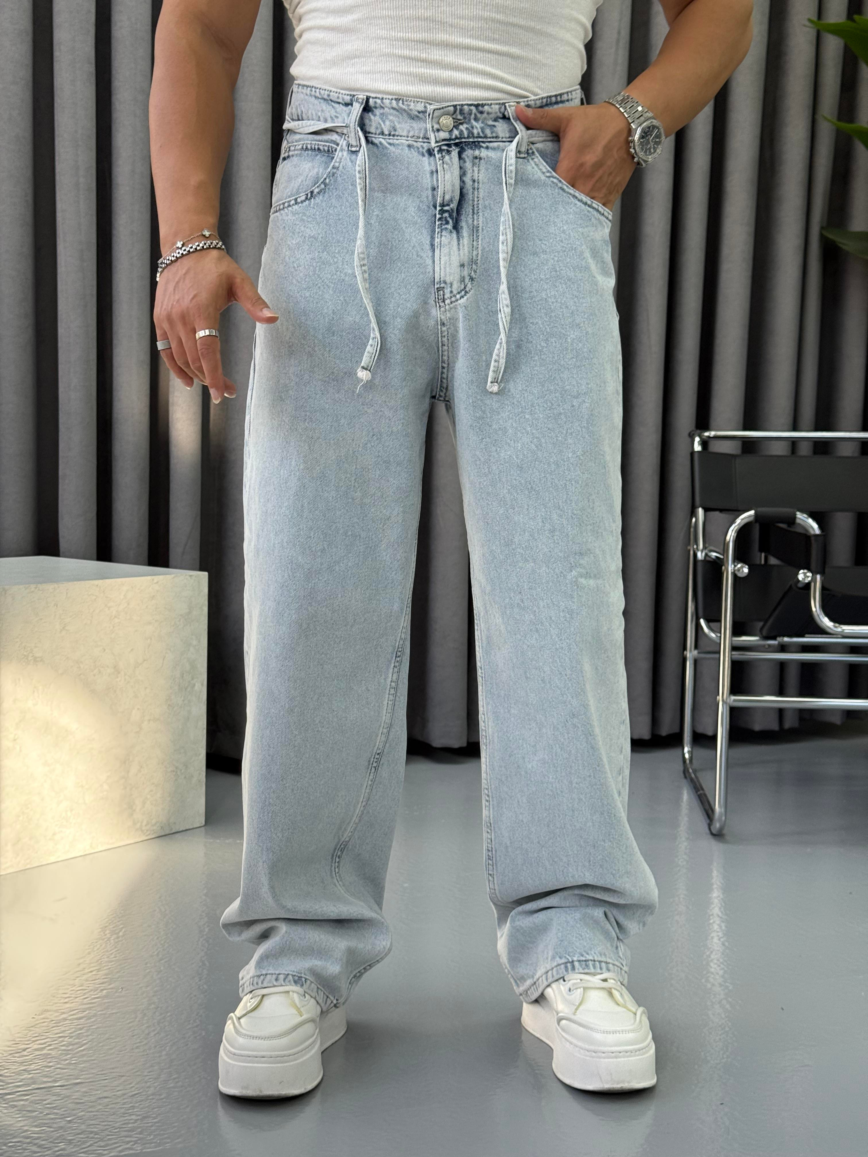 KEMER DETAYLI BAGGY KOT BUZ MAVİ