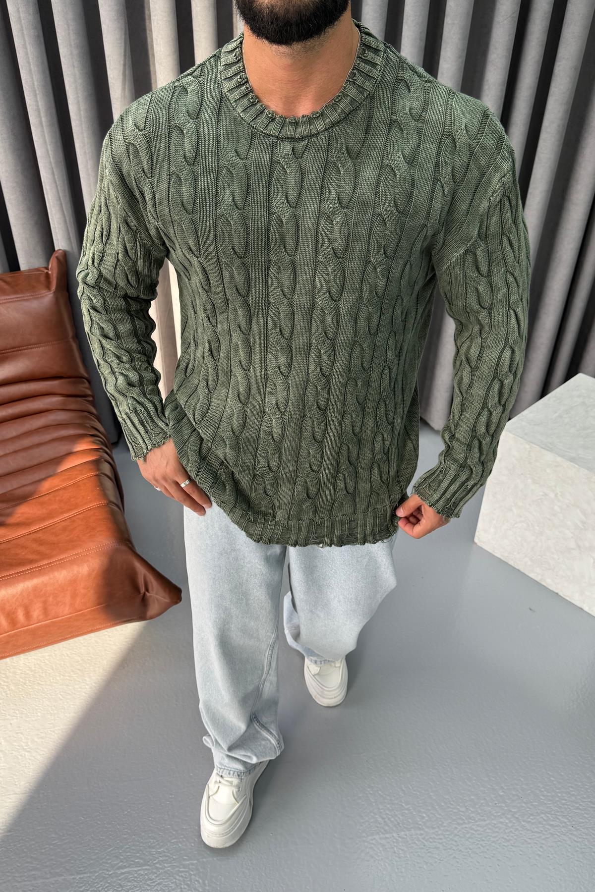 OVERSİZE YIKAMALI ÖRME KAZAK HAKİ