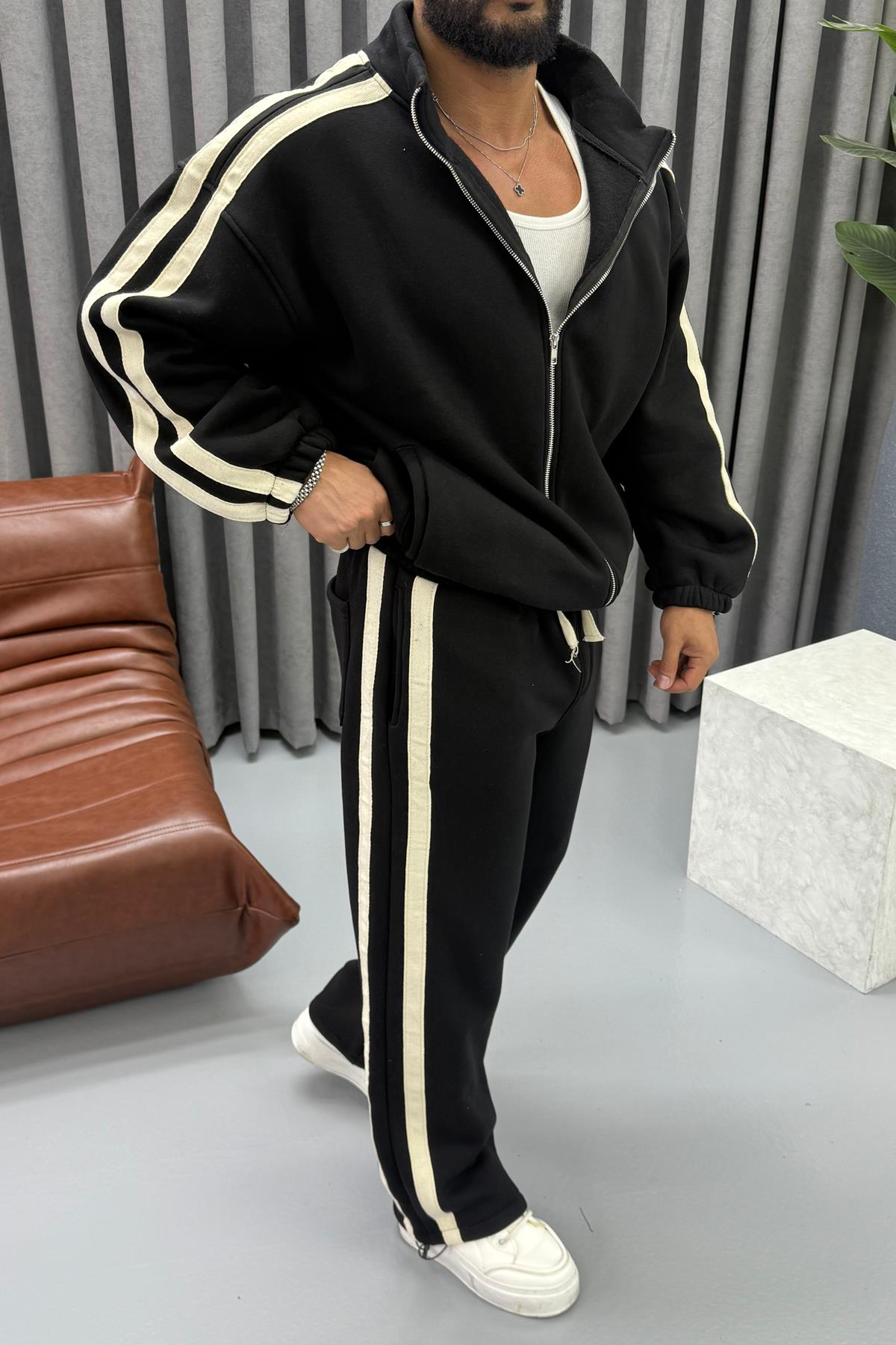 RAHAT KALIP ÇİFT ŞERİTLİ EŞOFMAN TAKIMI SİYAH RAHAT KALIP ÇİFT ŞERİTLİ EŞOFMAN TAKIMI GRİ